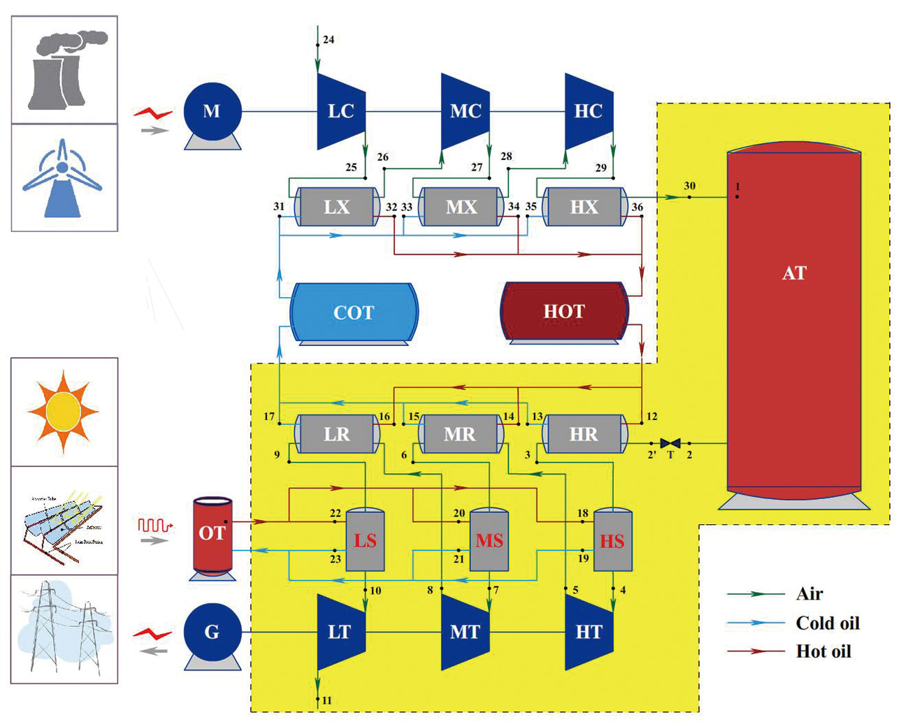 CHEN L X, ZHANG L G, YANG H P, et al. Dynamic simulation of a re-compressed adiabatic compressed air energy storage (RA-CAES) system[J]. Energy, 2022, 261: 125351. DOI:10.1016/j.energy.2022.125351.